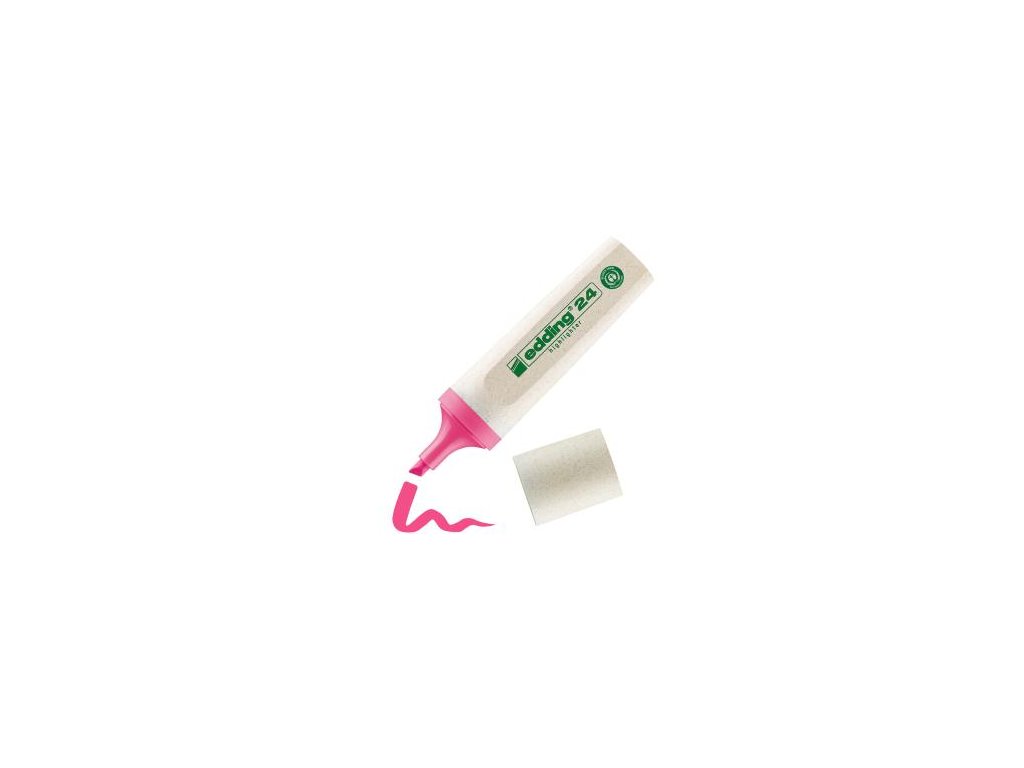Minimálne 90% tela a uzáveru zvýrazňovača je vyrobené z obnoviteľných zdrojov. Zvýrazňovač so zrezaným hrotom so šírkou stopy 2 - 5 mm. Pre zvýraznenie textových pasáží, poznámok a pod. Atrament na vodnej báze s intenzívnymi farbami. Dopĺňateľný atramentom HTK 25. Balenie 10 ks.Farba: ružová